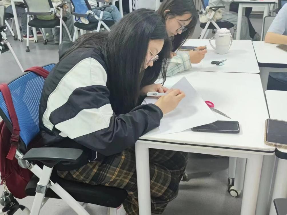 活动伊始,左广霞老师带领大家以一首活泼欢快的小鸡舞开场,活跃了气氛。随后,左广霞老师提问大家参加此次活动的目的,让大家谈谈对自我的感想,并介绍了弗洛伊德提出的精神的三大部分—本我、自我与超我,以及自我的生命力。紧接着,左广霞老师讲解了心理学的冰山模型,透过冰山理论去探索内在心理历程,发现自我的生命力在冰山最底层。活动中,左广霞老师给同学们发放了印有萨提亚自我环的A4纸,让大家先凭自己的理解给自我环中的八个方面进行打分。在左广霞老师通过亲身案例讲解萨提亚自我环的八个方面后,同学们重新根据自己对自我环的理解打分。通过小组讨论分享,阐述打分的理由。活动最后,左光霞老师让大家按照自己的打分给自我环涂色,然后剪下空白的地方,以此来观察八个方面与自我的远近,然后小组讨论如何对自己进行调整,如何从八个方面提升自己,提升自身生命力。